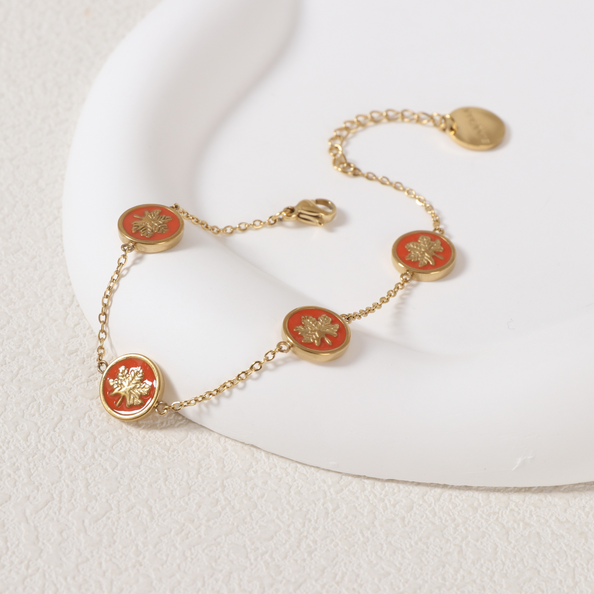 Das Emaille-Emblem zeigt ein Ahornblatt, welches für Stärke, Kraft, Ausdauer und Beständigkeit steht. Der Ahornbaum ist bekannt für seine Widerstandsfähigkeit und seine Fähigkeit, unter schwierigen Bedingungen zu gedeihen. Dieses Symbol verleiht dem Armband eine tiefere Bedeutung und macht es zu einem besonderen Geschenk für jeden Anlass.
